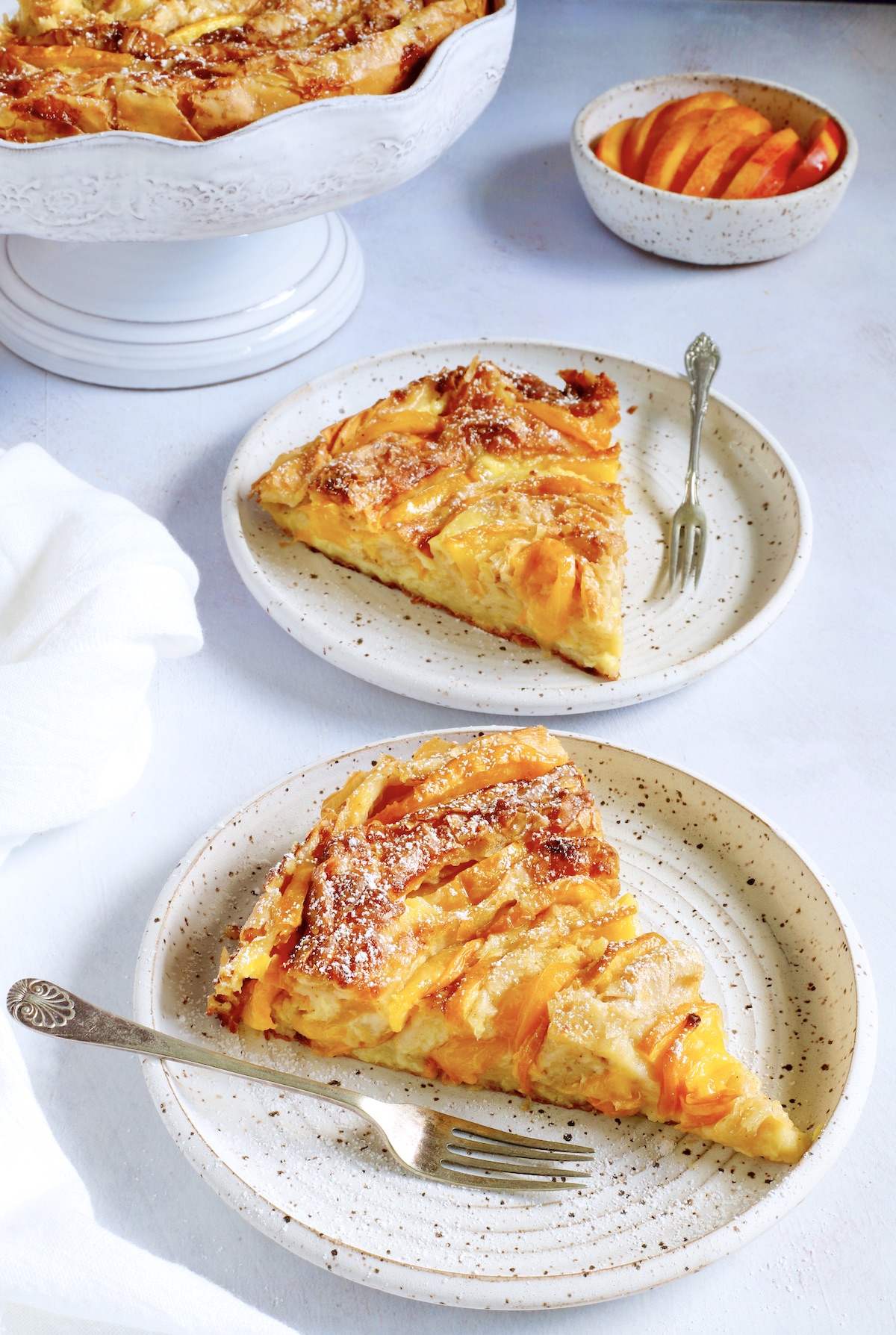 Recipe by Marilena's Kitchen at https://marilenaskitchen.com/ruffled-filo-custard-pie-with-stone-fruit/